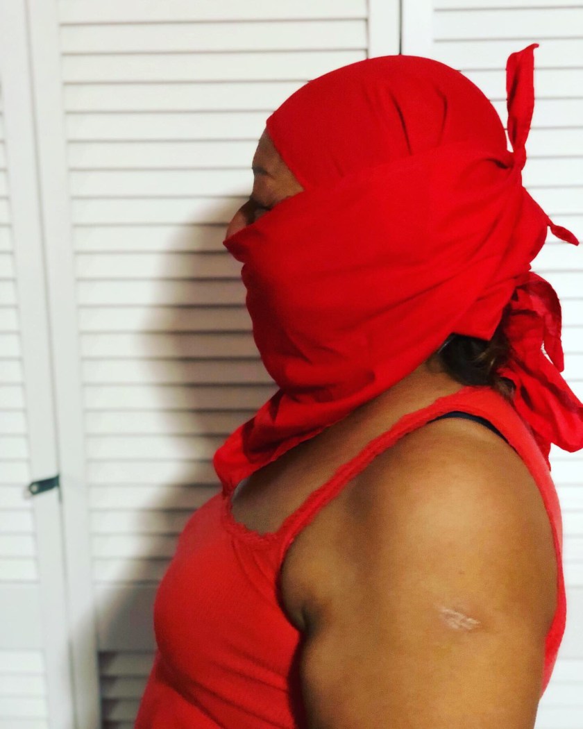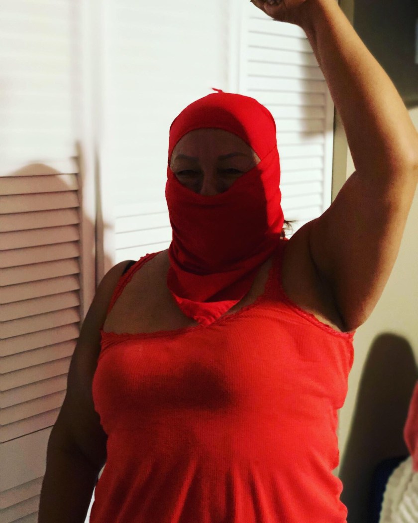I love encouraging my mom to stand in affirming poses with her work bandanas. It helps us see the farmworker who is always hidden, even from themselves. It creates a time space for the worker who rushes home to get out of their chemical soiled, sweat dripped, and dusted work clothes to stop and think about the labor impact over their bodies. It helps bring out the strength of the toiled worker that hides behind the veil. It helps find the liminal spaces where femininity, masculinity, and gender become fluid on the field. Most importantly, it helps us reframe her everyday life as Lucha!